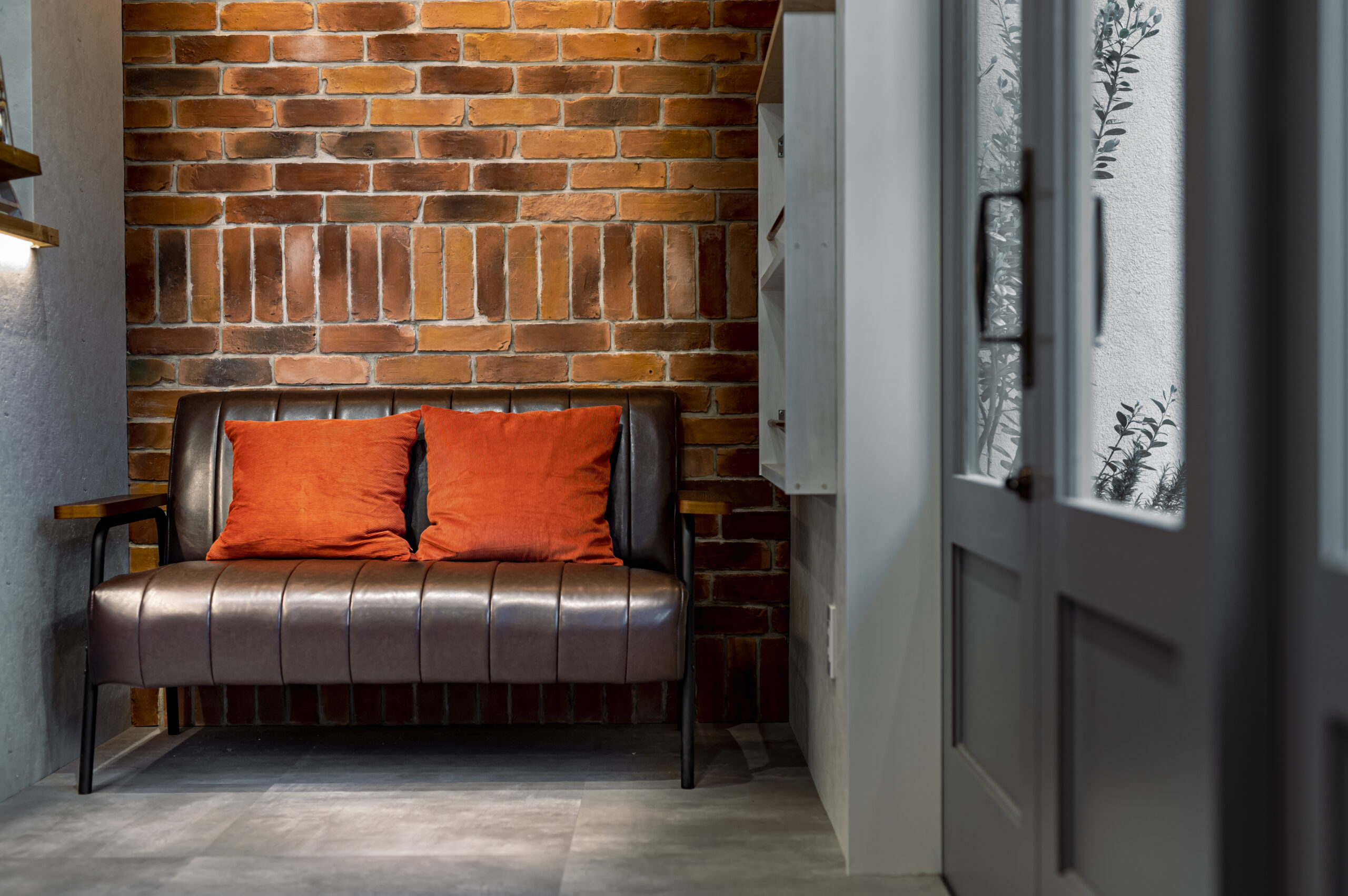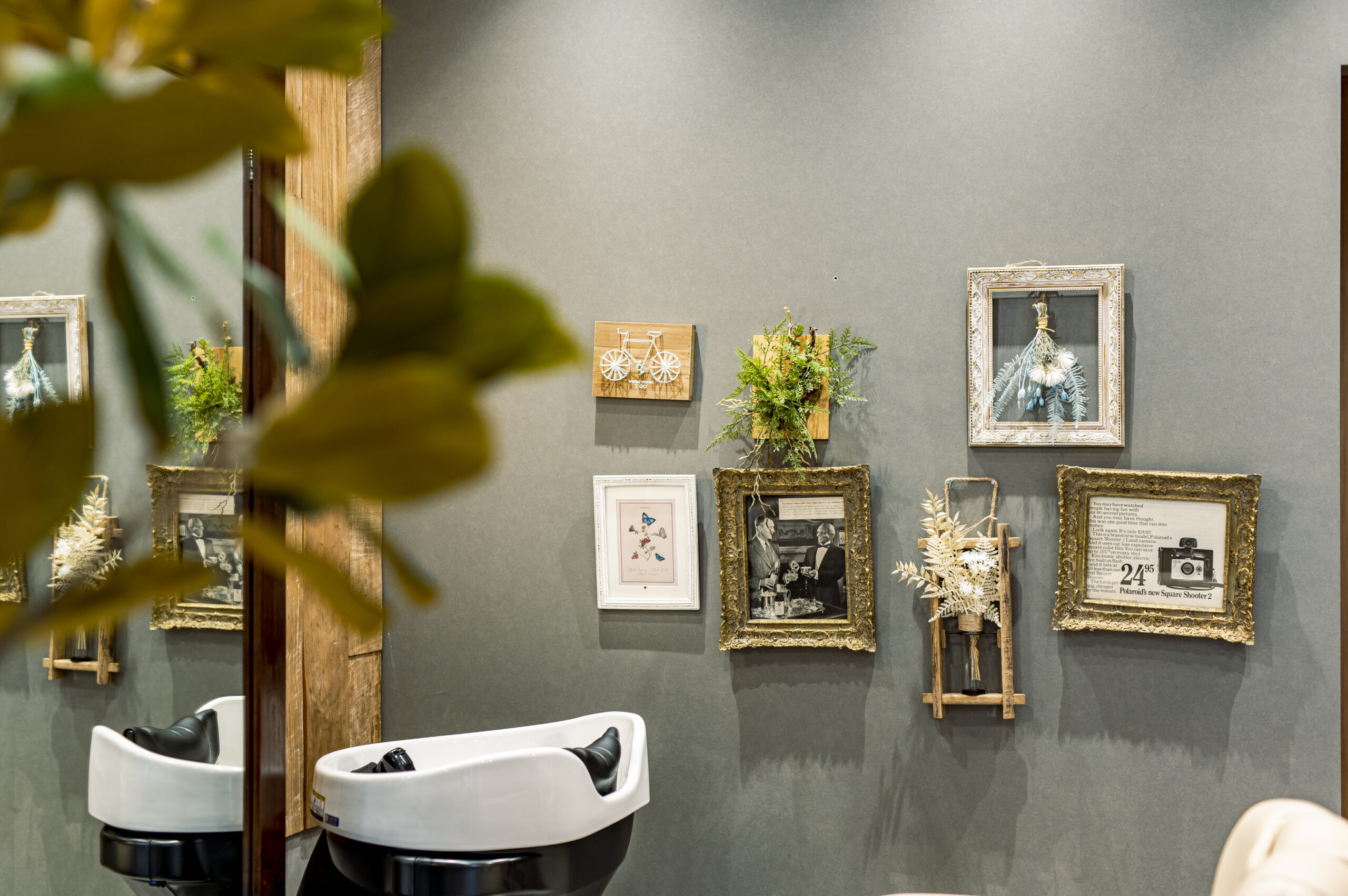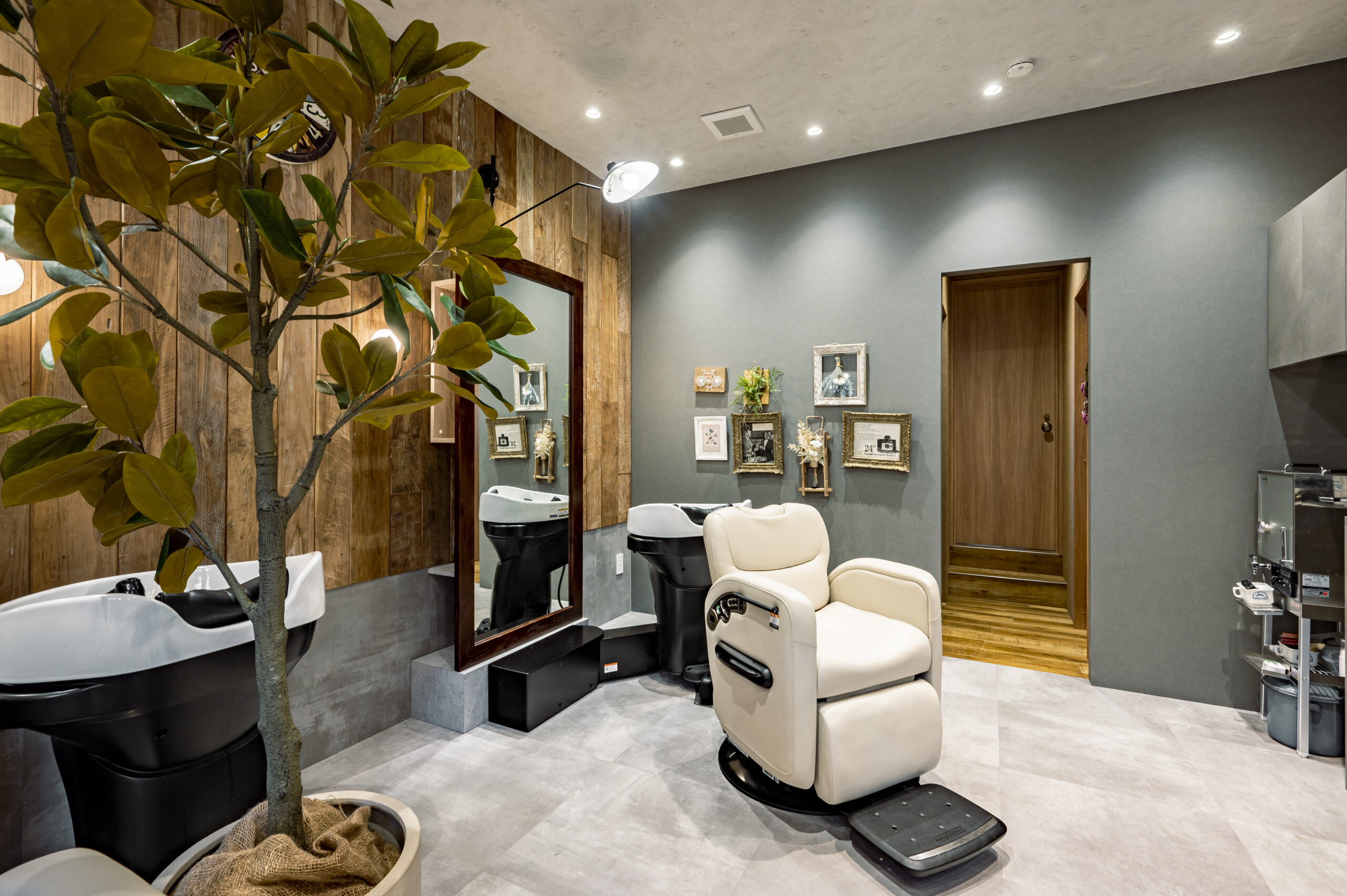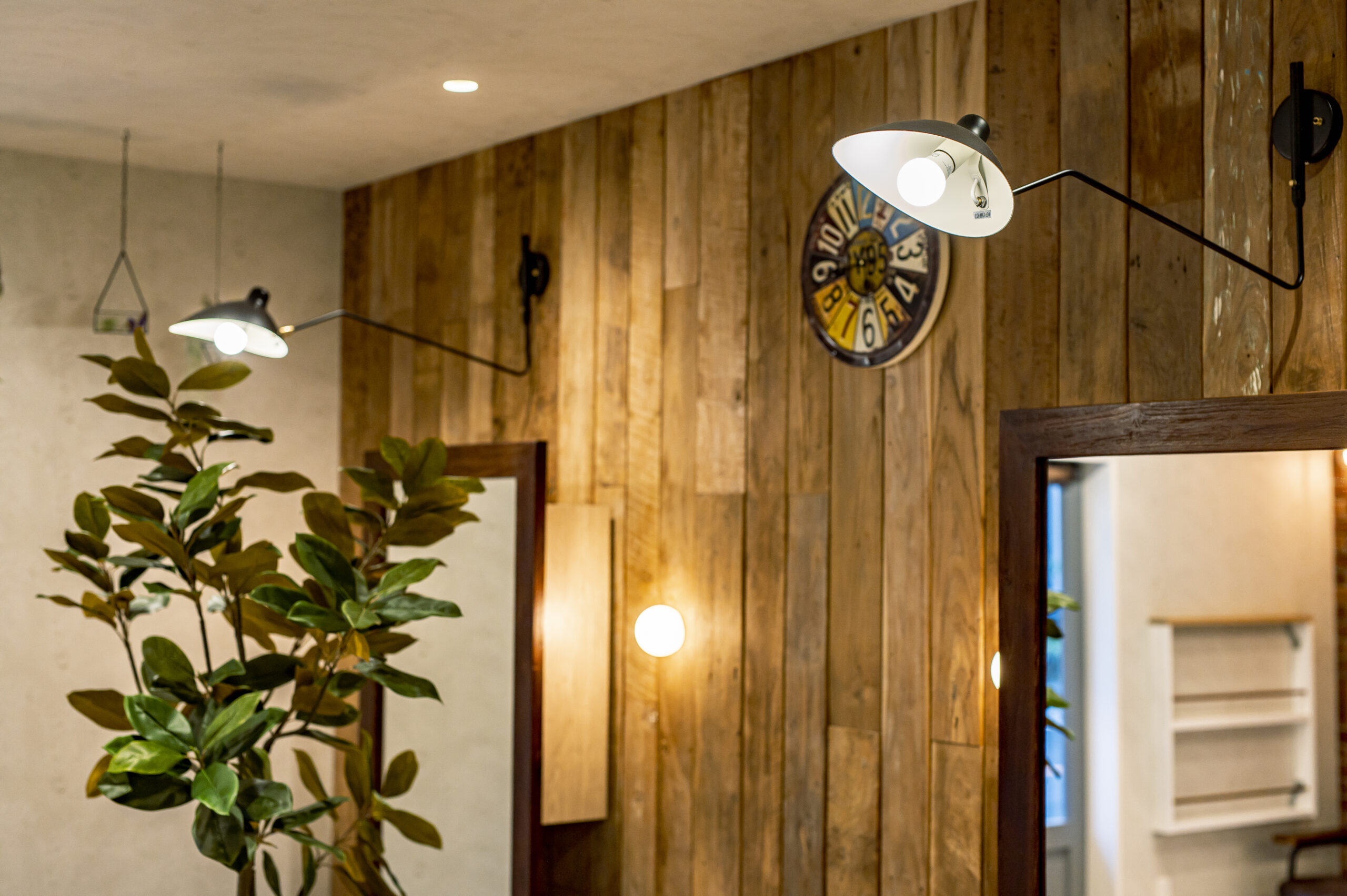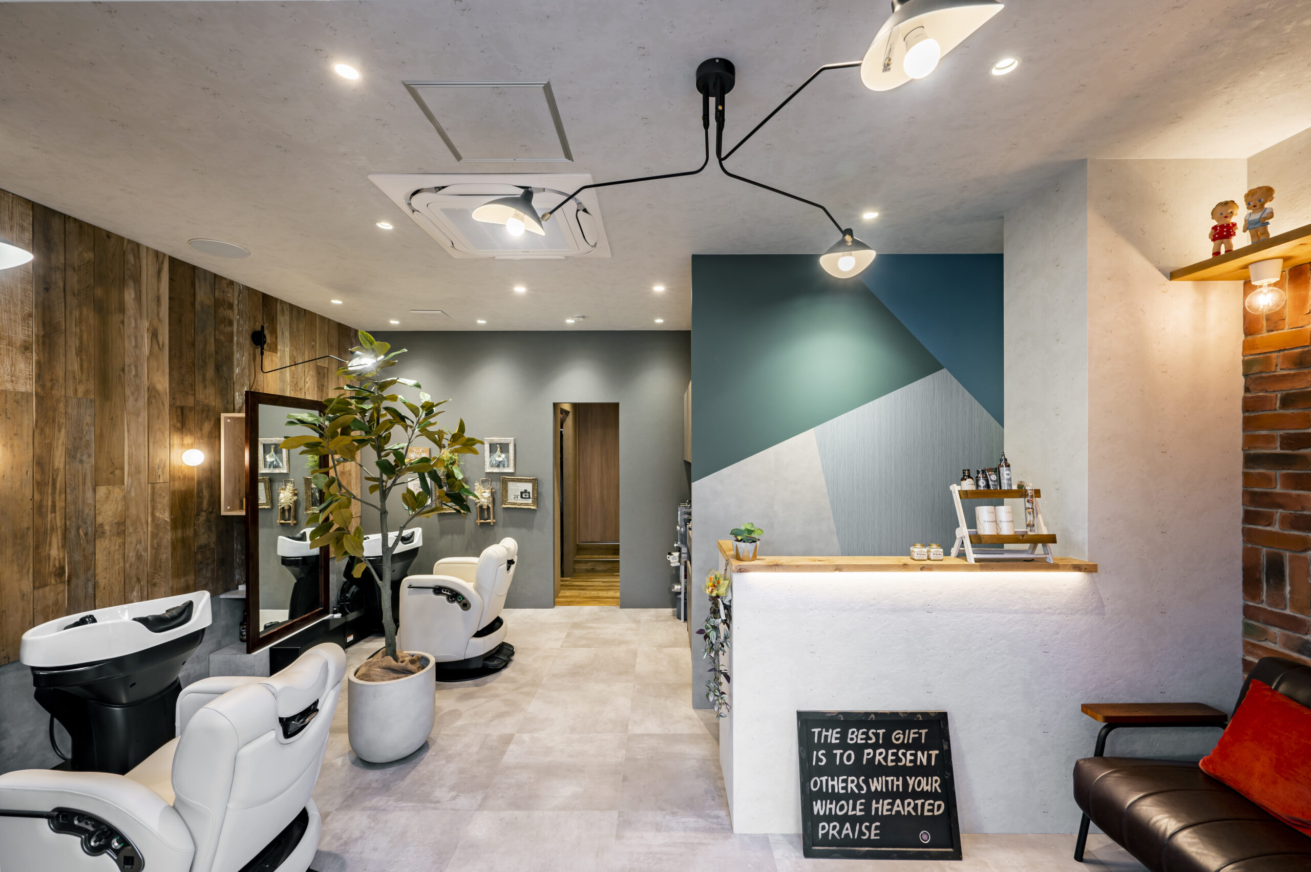 老舗サロンの新築プロジェクト。アンティークの要素を取り入れたモダンなデザイン。斜めチェック柄の印象的な床スロープは期待感を高めるワクワクするアプローチ。程よく店内が感じられる3連建具と温かみのあるwoodwallをバランスよく配置したおしゃれなファサード。シンプルな空間構成の中にポイントで古材を効果的に使用することで、居心地の良いサロンに仕上げた。